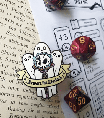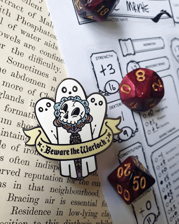 'Beware The Warlock' hard enamel pin! Measuring at around 2 inches and double clutched for added safety!