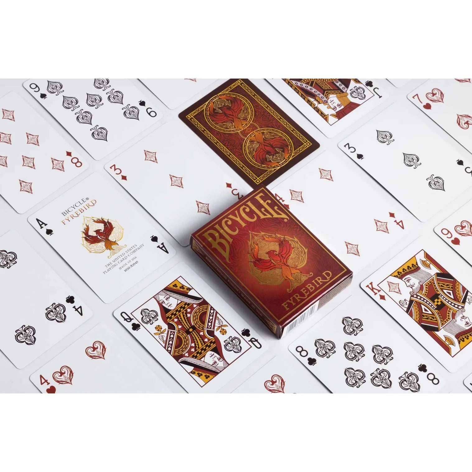 Revitalize your playing card collection with Bicycle® Fyrebird! Bicycle® Fyrebird brings the heat with fire inspired colors a gold foil accented tuck, and a custom card back.