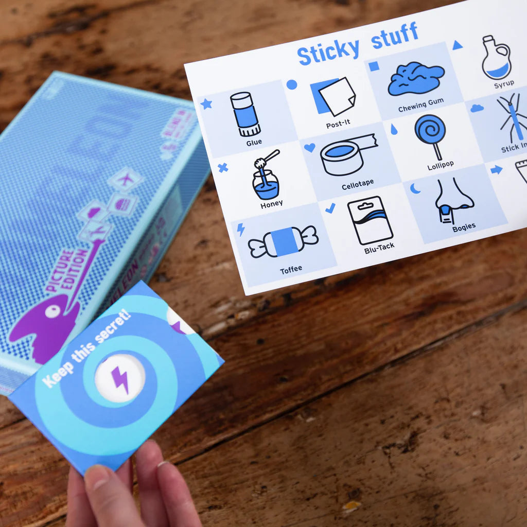The award-winning party game is back, but this time with pictures instead of words. Using new Symbol Reveal Sleeves, all the players can see which picture is the secret one — except the Chameleon! To catch them, each player will say one word related to the picture. The Chameleon can’t see the secret picture so they’ll have to blend in by saying something that makes them ‘sound like’ they know what everyone’s talking about. Will the Chameleon escape yet again? Or will everyone manage to catch them out?
