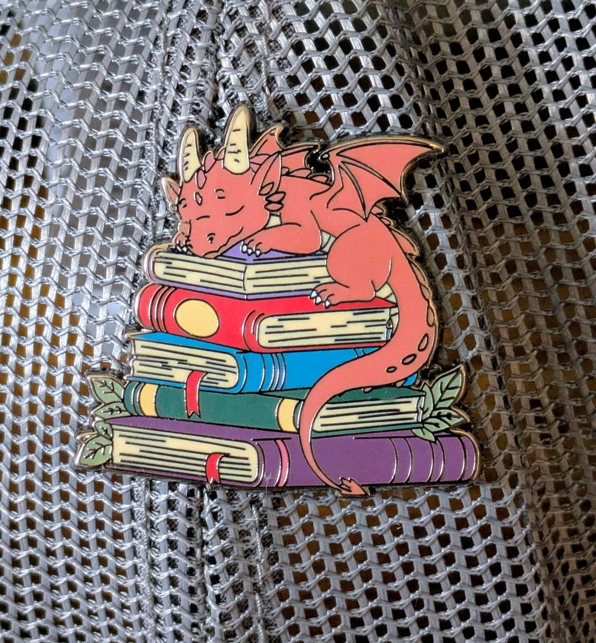 Dragon Sleeping on Top of Books Enamel Pin - 1.5"