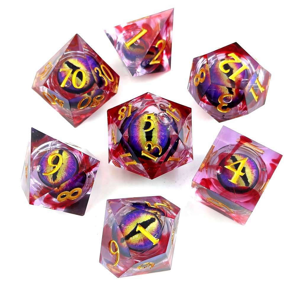Eye of Terror | Moving Eye Liquid Core Dice | 7-Poly Set