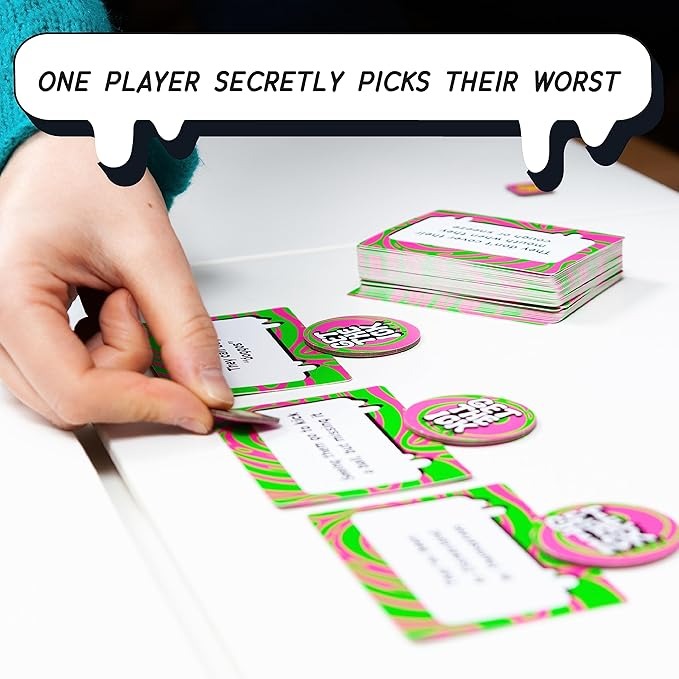 - 100 DIFFERENT ICKS INSIDE: Flip over three cards, secretly pick your least favourite one and hide the ‘Ick’ token underneath.