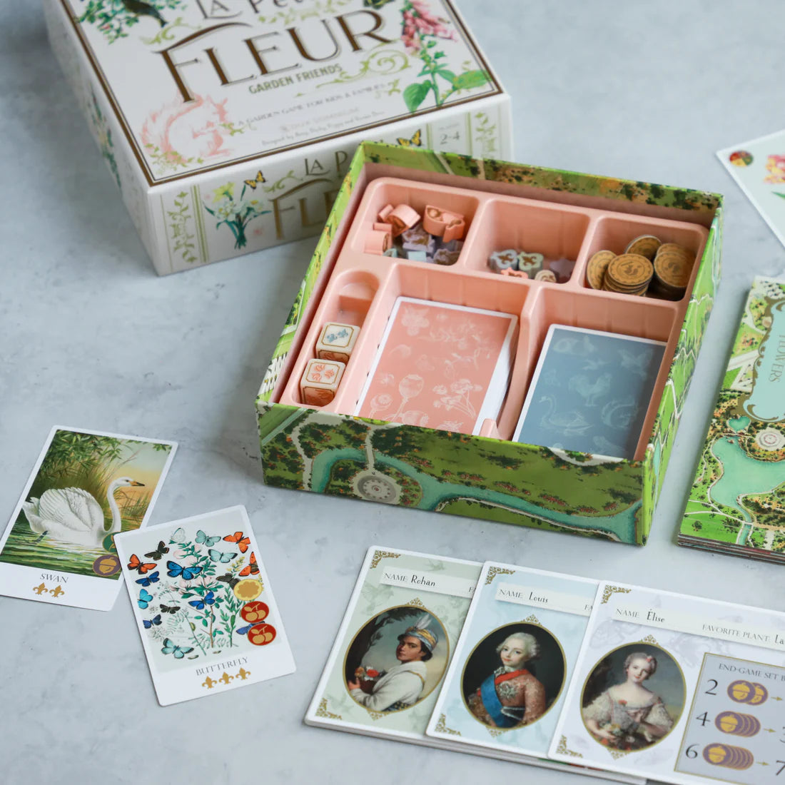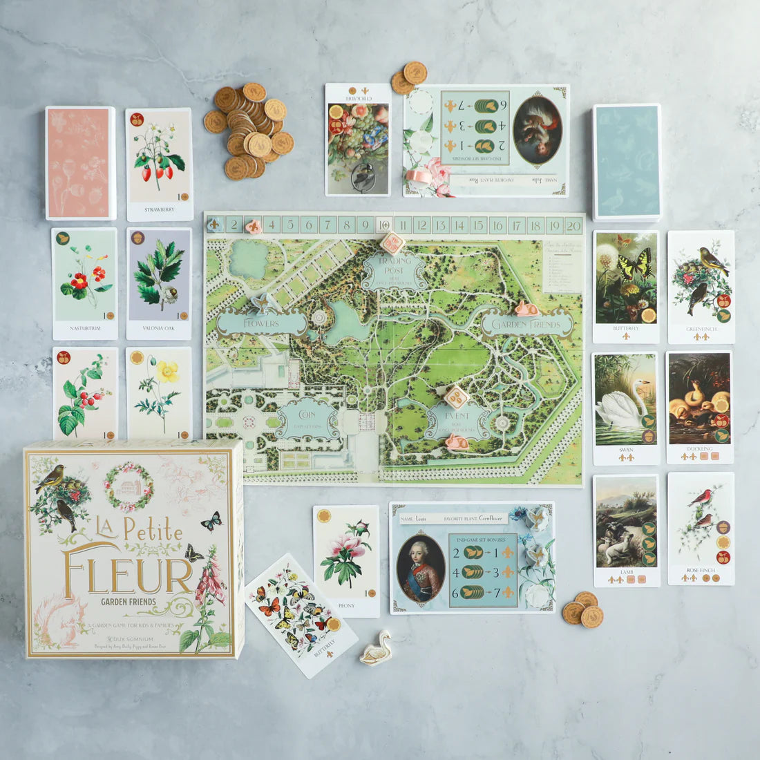 Collect flowers & animal friends in the Whimsical rococo Garden game for 2 to 4 players.