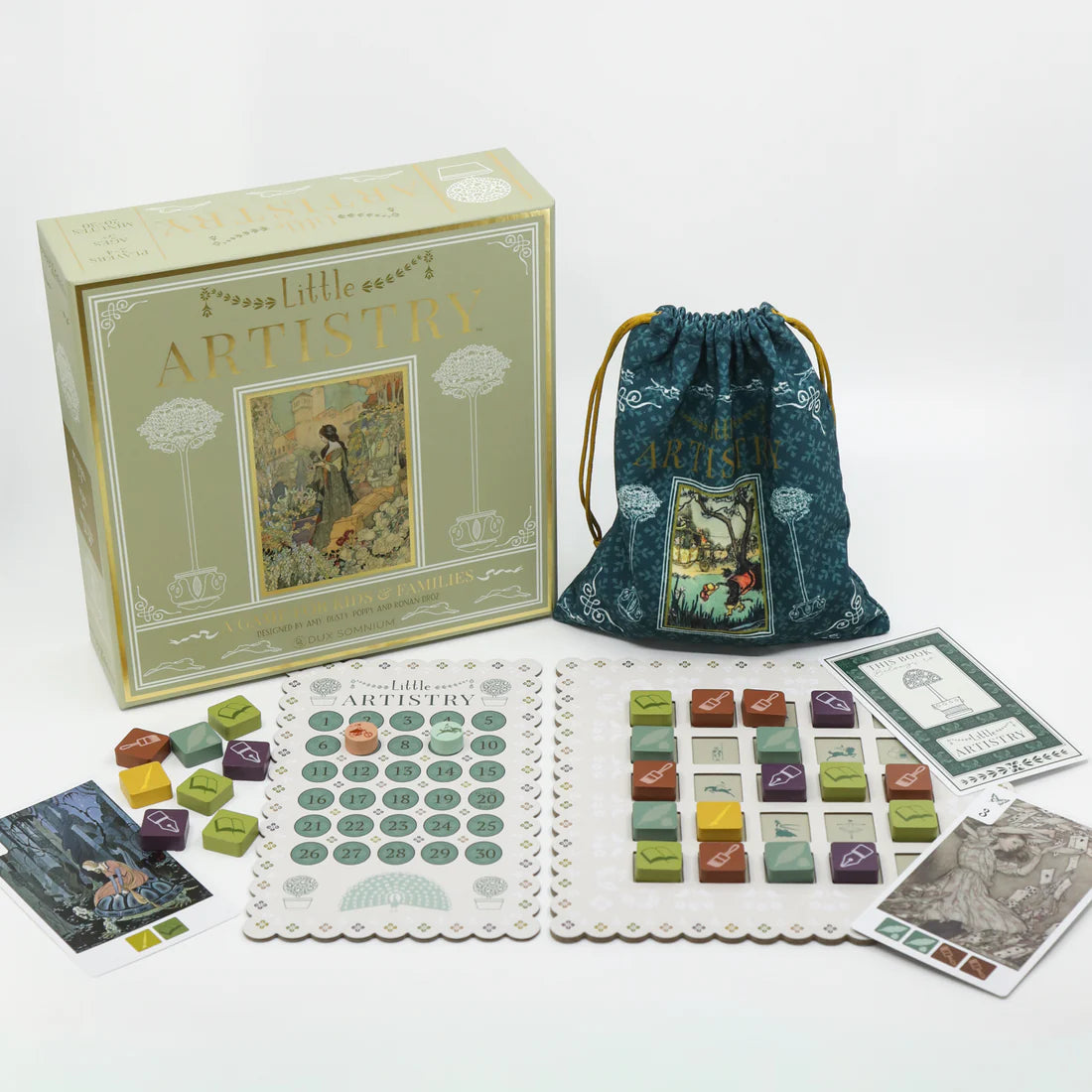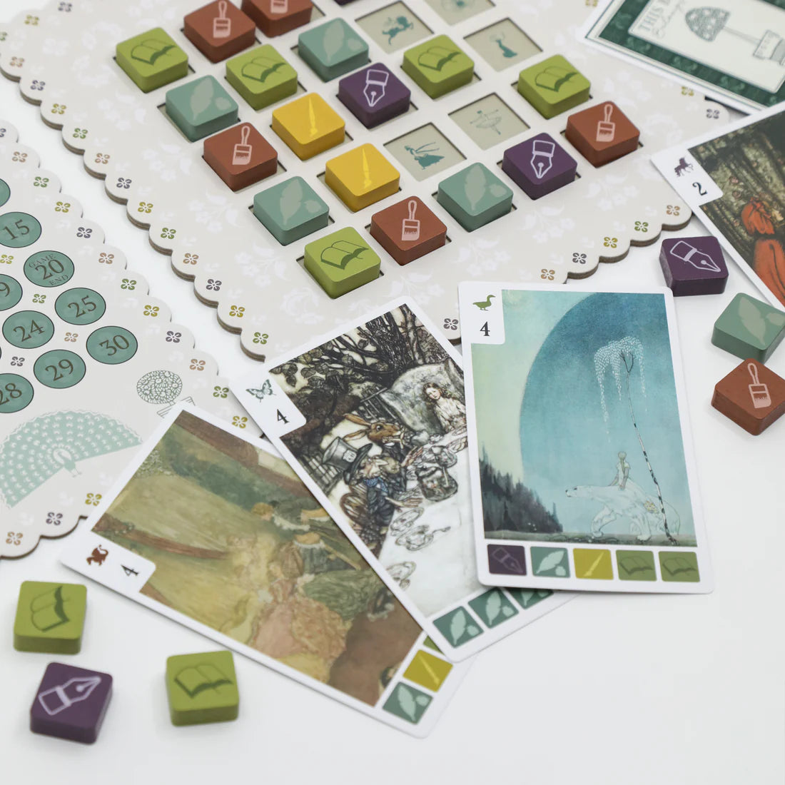 Gather your materials and be inspired by renowned storybook illustrators from the Golden Age of Illustration. Choose the right tiles to buy illustrations from old-fashioned fairy tales and nursery rhymes in this delightful game for two to four players. The player who gains the most Storybook Points is the winner!