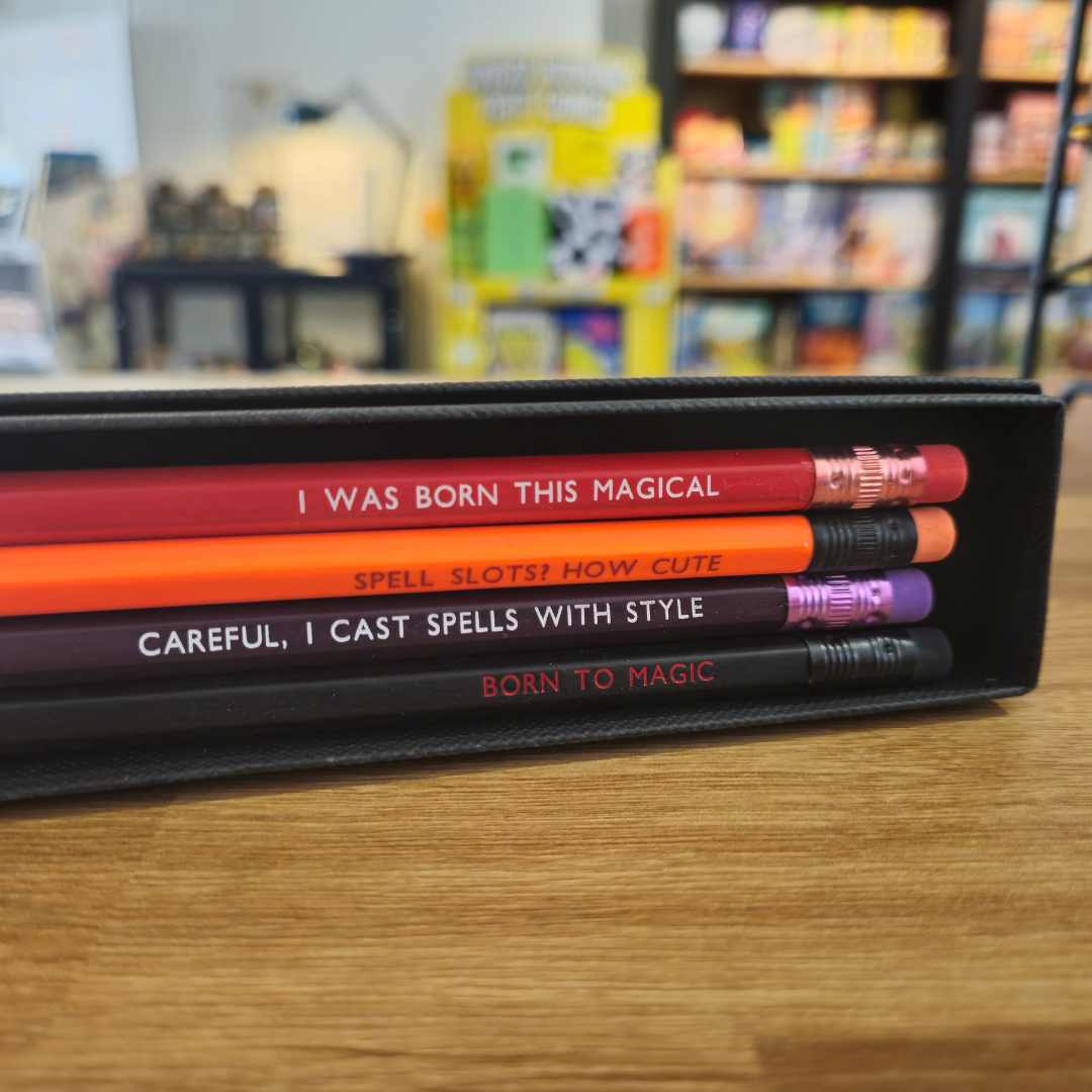 Accessorize your next D&D campaign with this set of 4 graphite pencils from Mystery Dice Goblin.