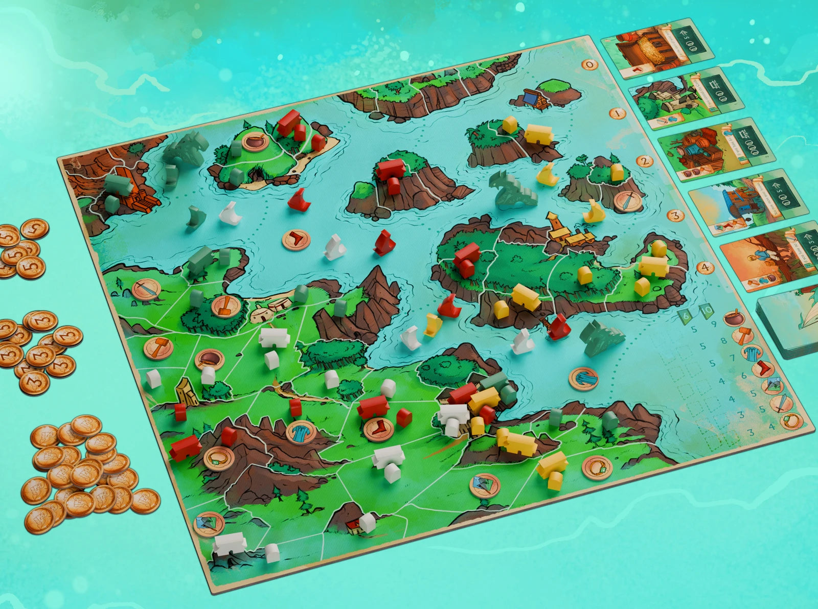 Six Sojourns has a larger board and more cards than Eight-Minute Empire, in addition to many exciting new features.