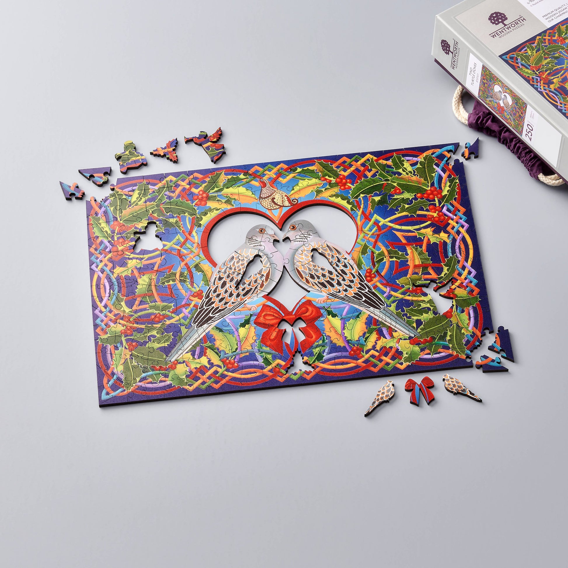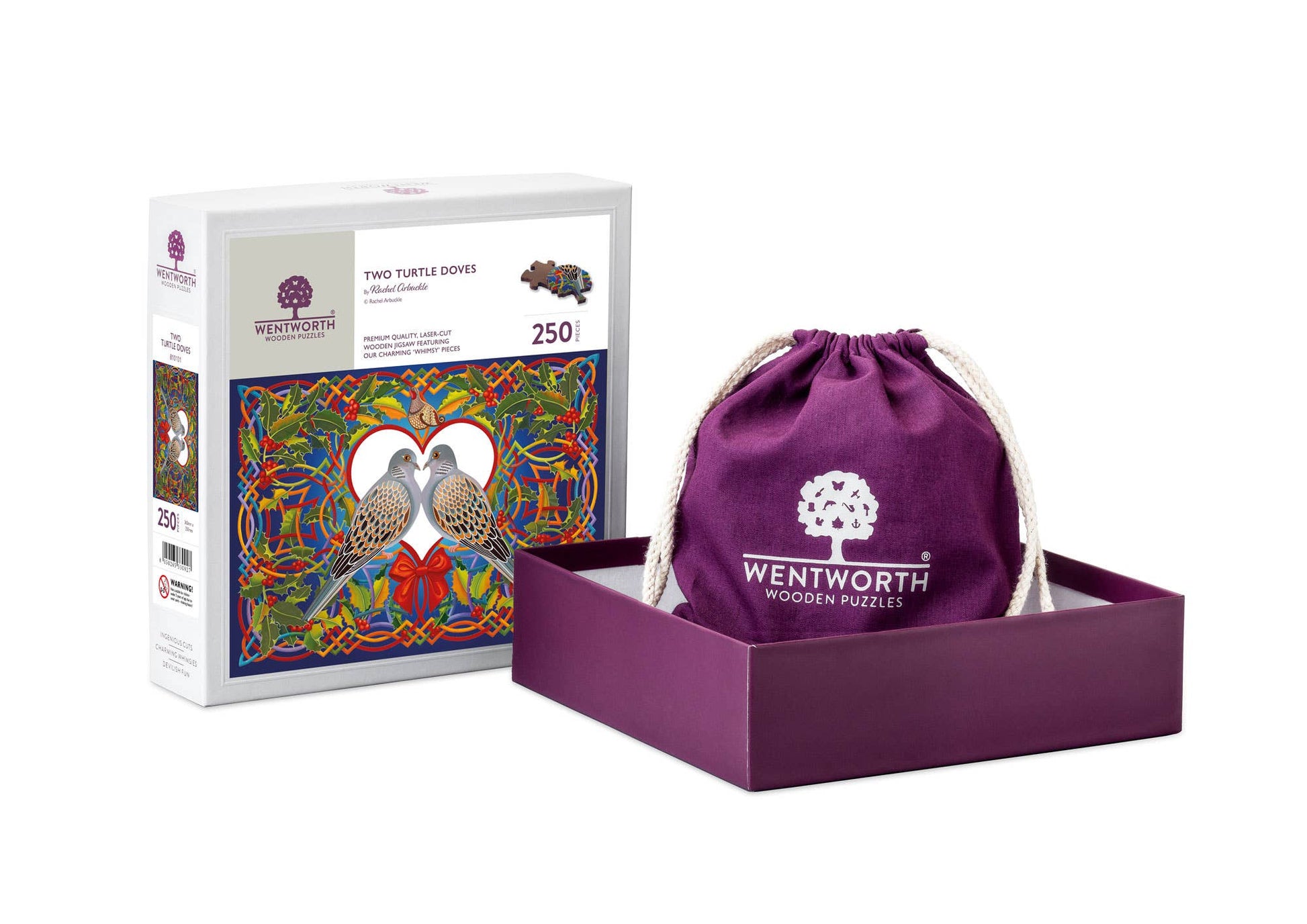Available in 1 size. Two Turtle Doves is a second installment of our exclusively commissioned 12 days of Christmas adult jigsaw puzzle range by artist Rachel Arbuckle. Complete with specially designed whimsy pieces this puzzle is sure to keep the whole family entertained this Christmas. By Rachel Arbuckle. Please note, the white space around the doves is empty and does not include any puzzle pieces.